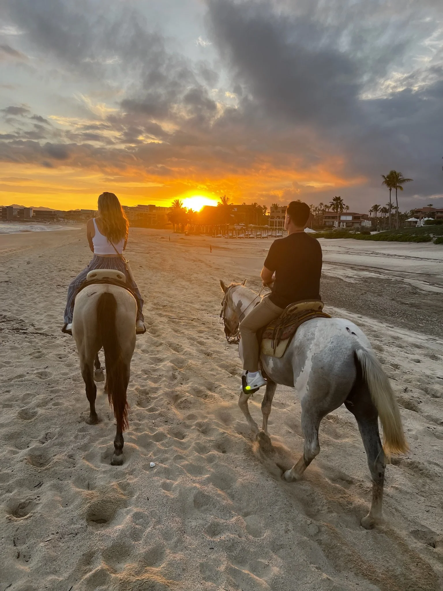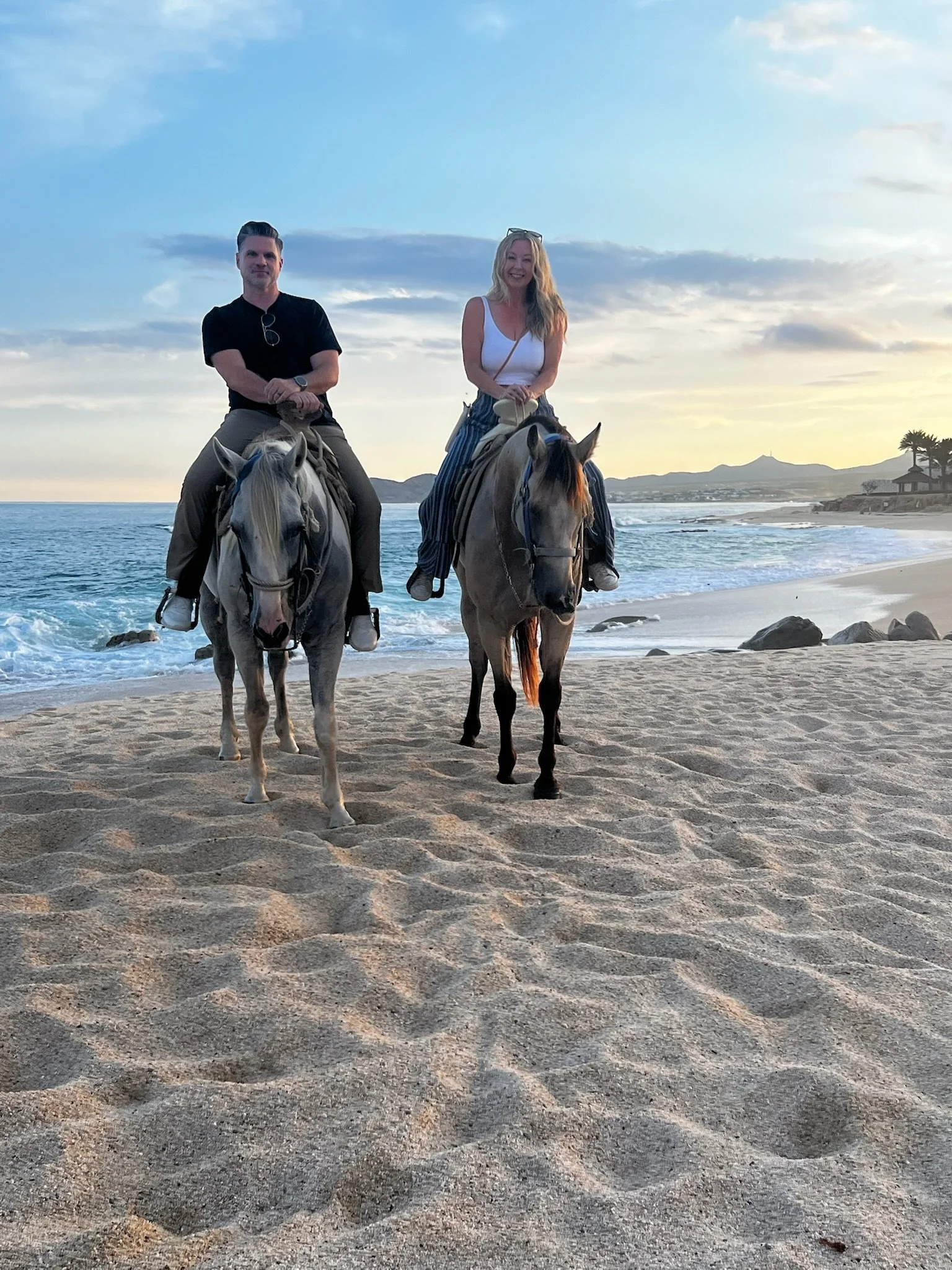 At Las Ventanas al Paraíso, horseback riding along the beach offers a uniquely romantic and exhilarating way to experience the natural beauty of Los Cabos. This unforgettable adventure allows couples to ride side by side along the pristine shoreline, with the rhythm of the waves and the warmth of the Baja sun enhancing the experience. Whether it's a sunrise ride with the sky painted in soft pastels or a sunset journey where the horizon glows in golden hues, the setting is nothing short of magical. The resort's expert guides ensure a safe and enjoyable ride, catering to all levels of experience. For those seeking a blend of adventure and romance, this activity is a must-do, creating memories that will last a lifetime.