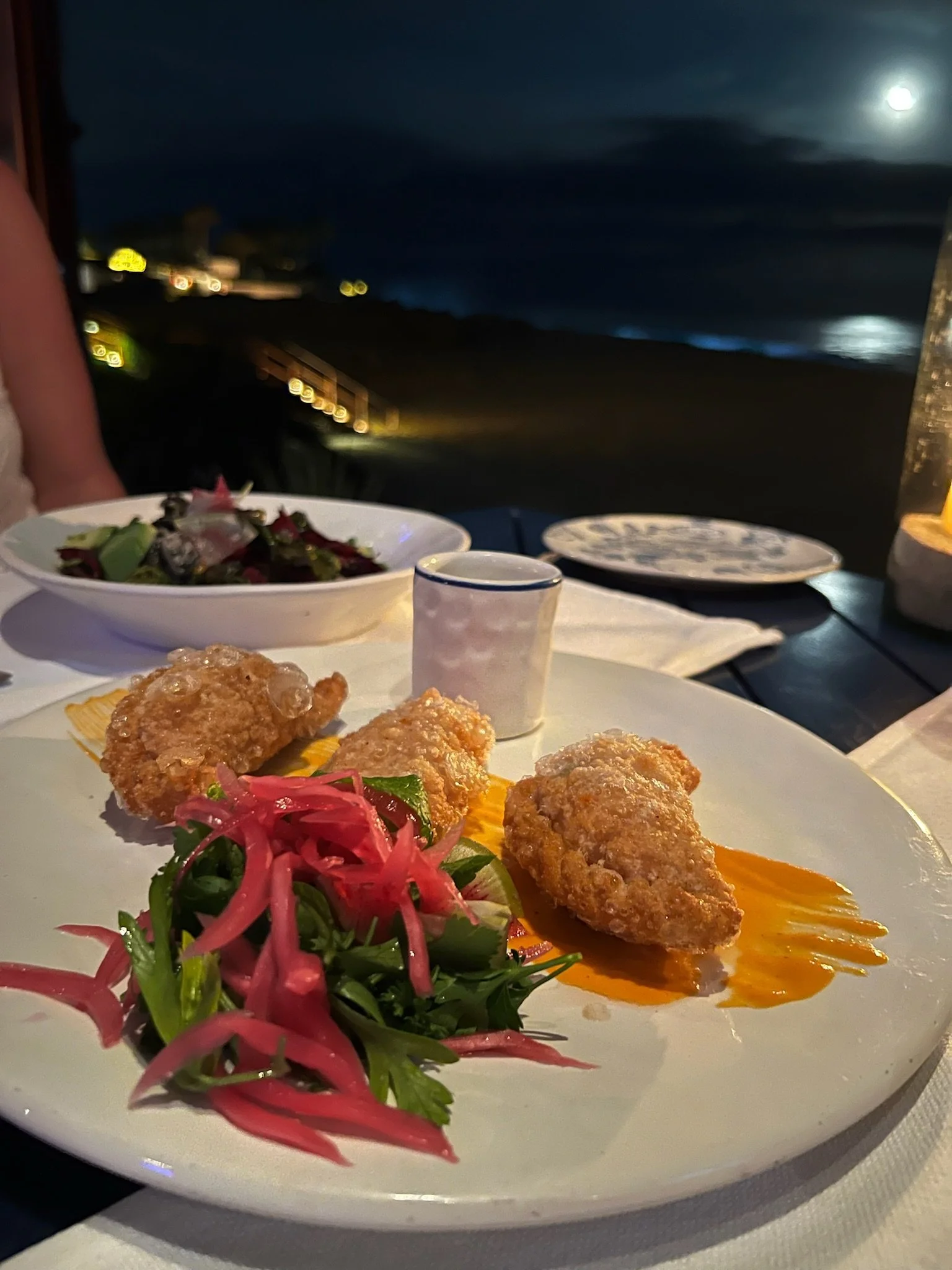 The highlight of our stay was our anniversary dinner at Arbol, the resort’s signature fine dining restaurant. The team arranged a private table nestled in a sunken fountain, surrounded by flickering candles and trees draped in twinkling lights. The setting felt cinematic, intimate, serene, and completely unforgettable. Each course was a masterpiece, artfully presented and rich with flavor, transforming dinner into one of those rare travel moments that stays with you long after you’ve returned home.